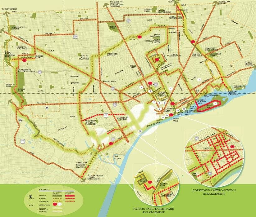 The Detroit Greenway Coalition is currently under development and planning to create a city wide network of greenways encompassing more than 70 miles of greenways and use additional miles of bike lanes for on-road connections. This Network would also provide connections to other neighboring and regional efforts.
