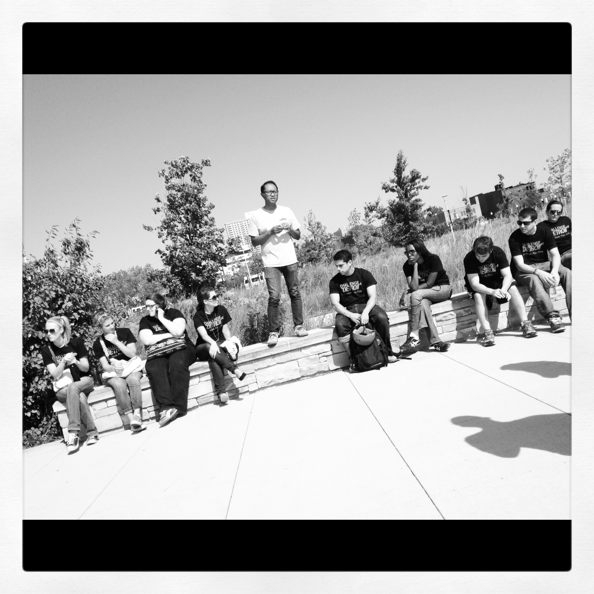 Day 4: It’s “pure Detroit” day. We spent the morning together helping the Detroit Riverfront Conservancy clean up the site of the old Detroit Free Press building in preparation for their development of the West Riverfront in the coming months. We then ventured back to TechTown to learn about the past, present and future of the city from some very bright minds. We heard from authors and professors that have devoted their lives to studying what Detroit is all about and what it has the potential to be. It was inspiring to say the least and certainly got my wheels turning.