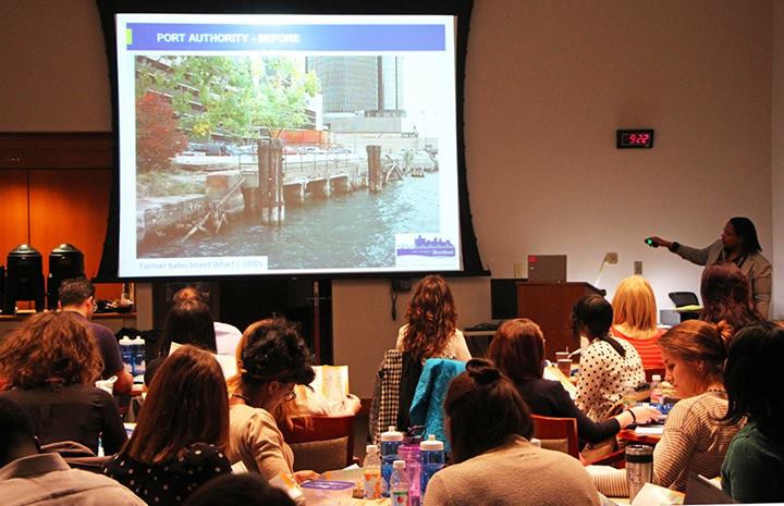 This month, the Challenge Detroit Fellows focused on one of Detroit’s most prized locations, the Detroit Riverfront. The Detroit Riverfront has undergone an incredible transformation in the last decade, evolving from a private, underutilized space with an industrial history to several miles of safe, engaging, interactive public space with plans to continue to grow in the coming years.