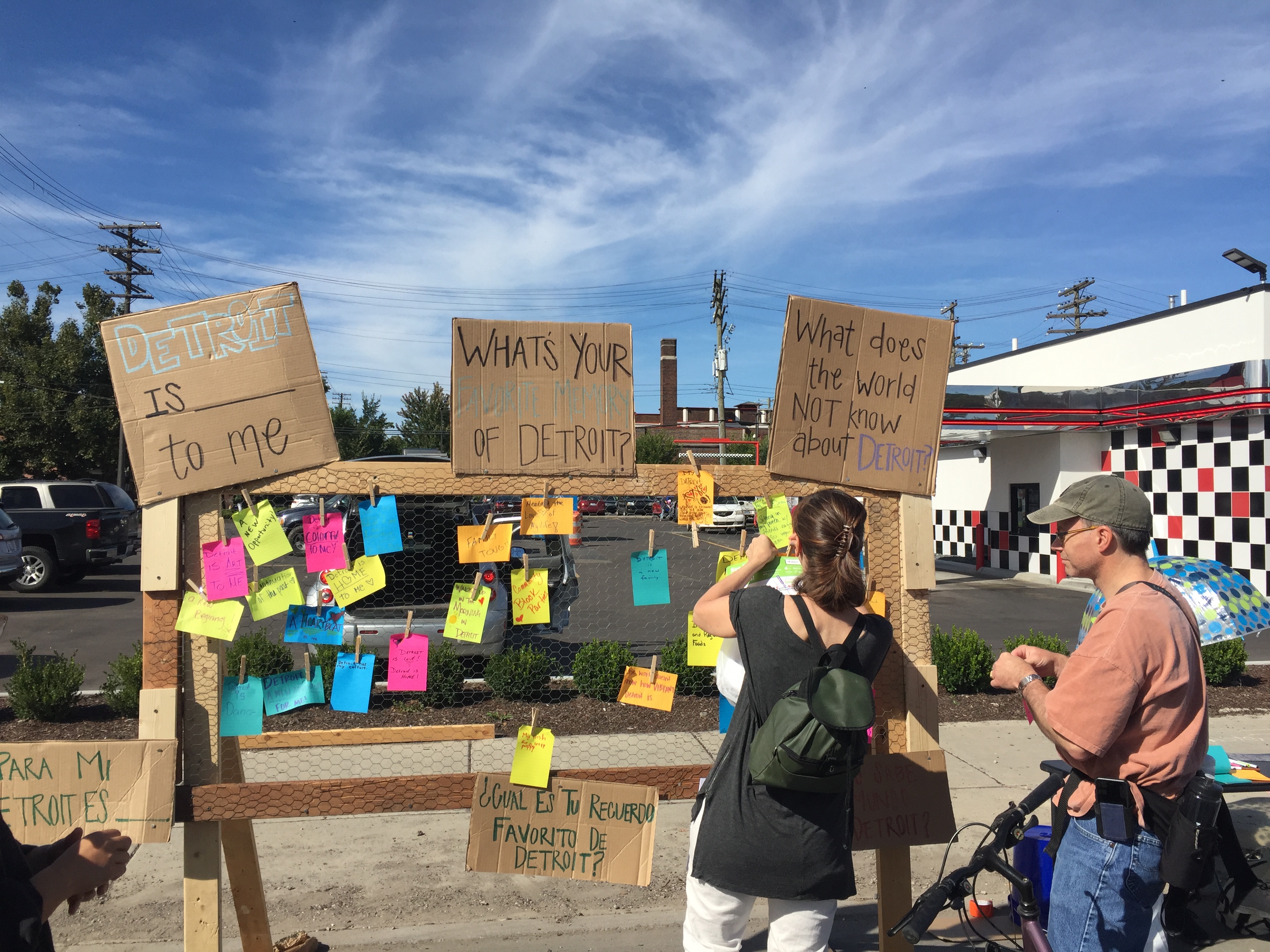 Our first design thinking challenge was to design a program for Open Streets 2017. My team – Matt, Elise, Monti, and Natasha – came up with a board of chicken wire that prompted Detroiters to reflect on why they love their city.