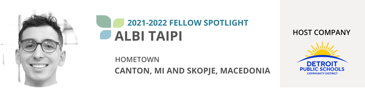 Albi Taipi is a 2021-2022 Fellow. He considers both Canton, MI and Skopje, Macedonia his hometowns. Albi attended Wayne State University where he earned a Bachelor of Arts in Political Science (Honors) and a Bachelor of Arts in Spanish.