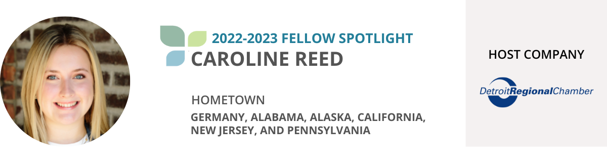 Caroline Reed is a 2022-2023 Fellow. Her host company is the Detroit Regional Chamber where she is the Small Business & Community Engagement Fellow. Learn more about Caroline below.