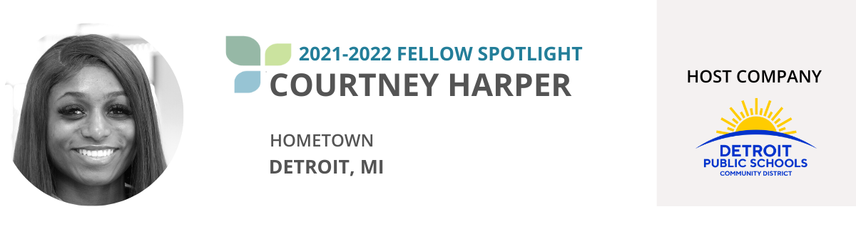 Courtney Harper is a 2021-2022 Fellow. Courtney is a native Detroiter and earned a Bachelor of Science in Business Management from DePaul University.