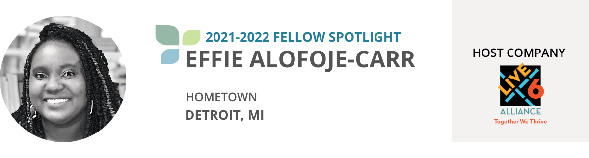 Effie Alofoje-Carr is a 2021-2022 Fellow. Effie is a native Detroiter and has earned a Bachelor of Arts in Humanities Pre-Law from Michigan State University.