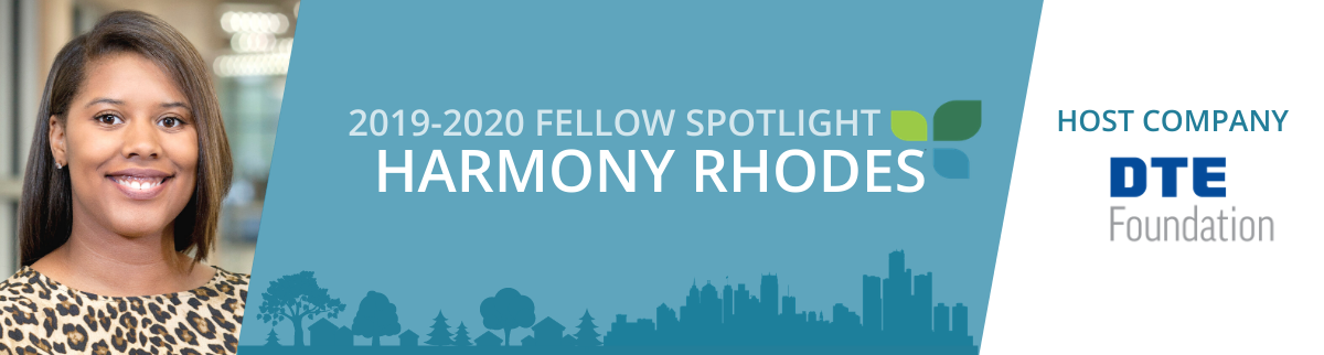 Harmony Rhodes is a 2019-2020 Fellow. She is a native of Detroit (Southwest) and graduated from University of Michigan Dearborn with a bachelors in Political Science and Communication.