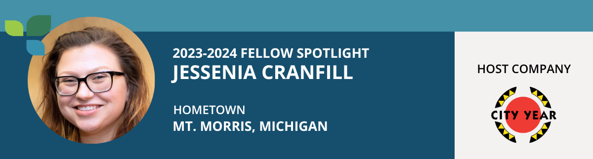 ABOUT: I’m Jessenia Cranfill, my host company is City Year Detroit, and a fun fact about me is I’m learning Italian on Duolingo. Although I moved around a lot growing up, I consider Mt. Morris, MI, a small city north of Flint, my hometown because that was the school district I graduated from. After receiving my diploma, I headed to Oakland University, where I gained my Bachelor of Social Work. Outside of work, my week usually consists of going to church, lifting weights and running, watching Gilmore Girls, and spending time with my friends.