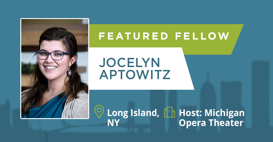 University of Michigan alum, Jocelyn Aptowitz is the Challenge Detroit Fellow at Michigan Opera Theatre. There she serves as the Patron and Community Relations Coordinator. In her free time, she enjoys trying every brunch location in Detroit, stealing clothes from her sister’s closet, and figuring out how to navigate adult life without Google Maps. Learn more about Jocelyn in her Spotlight video!