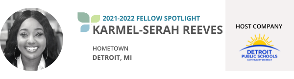 Karmel-Serah Reeves is a 2021-2022 Fellow. She grew up in Detroit and she has both a Masters of Public Administration from Grambling University and a Bachelor of Science in Urban Studies & Public Policy from Dillard University.