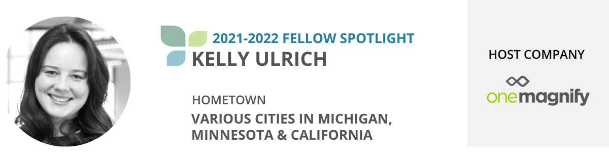 Kelly Ulrich is a 2021-2022 Fellow. Kelly grew up in Michigan, Minnesota and California. She attended UCLA and graduated with a Bachelor of Arts in Sociology with a minor in Civic Engagement, and recently completed a Master’s in Digital Advertising and Media Analytics from Michigan State University.