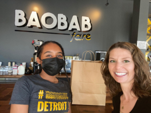 ![]() Reflecting on poetry at the Charles H. Wright Museum of African American History with Mx. David Parnell (pictured). | ![]() Kristin picks up her go-to meal, kuku and ji juice, at her favorite Detroit restaurant Baobab Fare. |