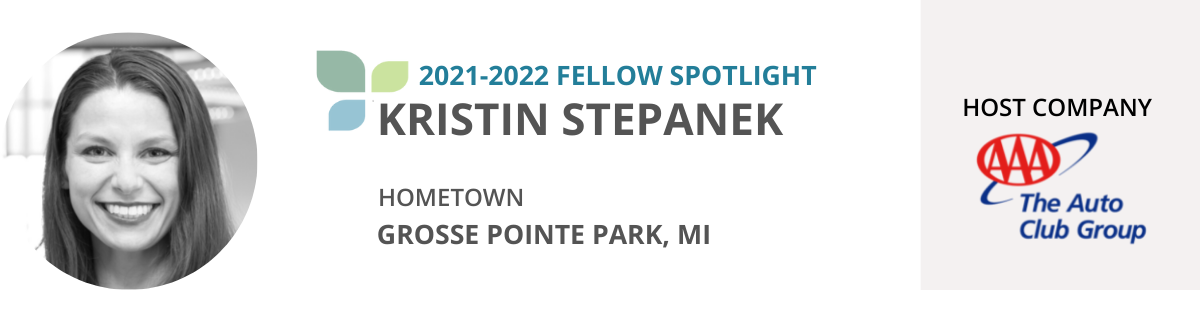 Kristin Stepanek is a 2021-2022 Fellow. Grosse Pointe Park, Michigan is her hometown. She has a Bachelor of Arts in Cultural Anthropology, minors in French and African and African-American Studies from the University of Michigan.