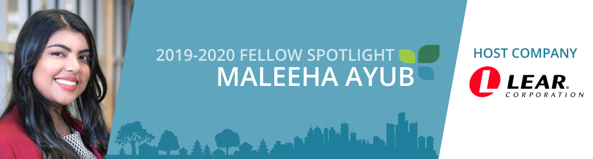 Maleeha Ayub, our 2019-2020 Fellow at Lear Corporation hails from Canton, Michigan. She graduated from Eastern Michigan University with a bachelor’s in business administration.