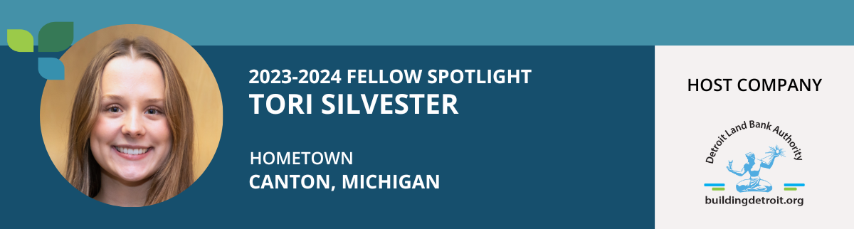 ABOUT: Hi, my name is Tori Silvester. I grew up in Canton, MI and currently still live there. I attended Michigan State University where I graduated with a Bachelor’s degree in Urban and Regional Planning in 2022. I am currently working at the Detroit Land Bank Authority on the Real Estate and Disposition team. When I am not at work I enjoy trying new recipes and traveling with my friends.