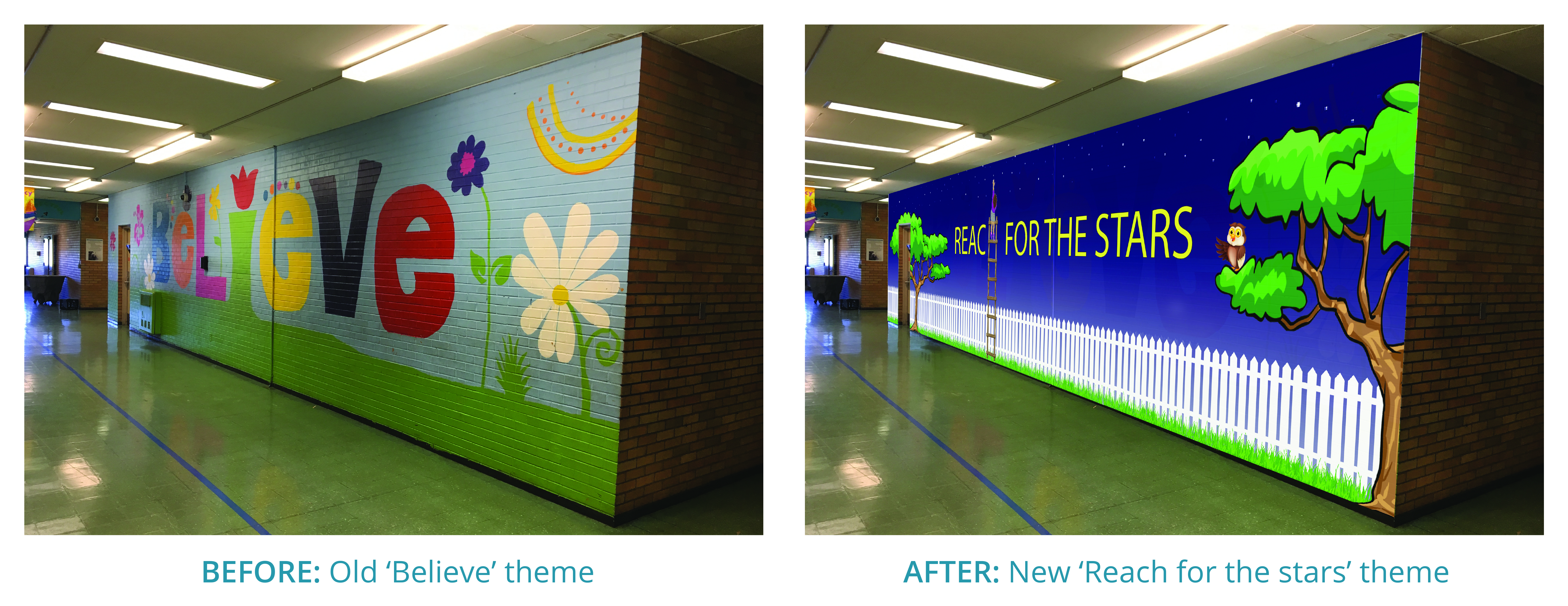 The purpose of this project is to engage community members, specifically youth at local schools, and inspire their work and efforts through inspirational imagery and messing.