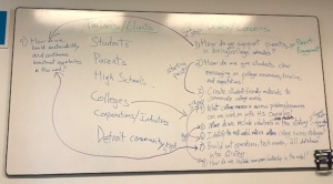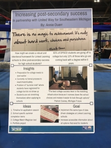 For the final project of this Challenge Detroit year, I worked with United Way for Southeastern Michigan, which strives to mobilize the caring power of Detroit and Southeastern Michigan to improve communities and individual lives in measurable and lasting ways. I was particularly interested in working on initiatives to help expand college and career pathways for Detroit students. United Way works with 15 Linked Learning schools in Detroit, which put students on a pathway to their career or post-secondary learning. While these pathways have increased students’ awareness about options after high school and have led to more students pursuing careers or higher education, there is an opportunity to do better and increase the rate of success of students’ ventures. Post-secondary access has increased, but too often students fail to complete their degree, leaving them with debt but no income increase. In fact, 60% of Detroit Public Schools Community District (DPSCD) students are going off to college but only 12% of those who go come back with a degree within 6 years. We are working to increase intentionality around connecting students to post-secondary units and make sure each students needs are met.