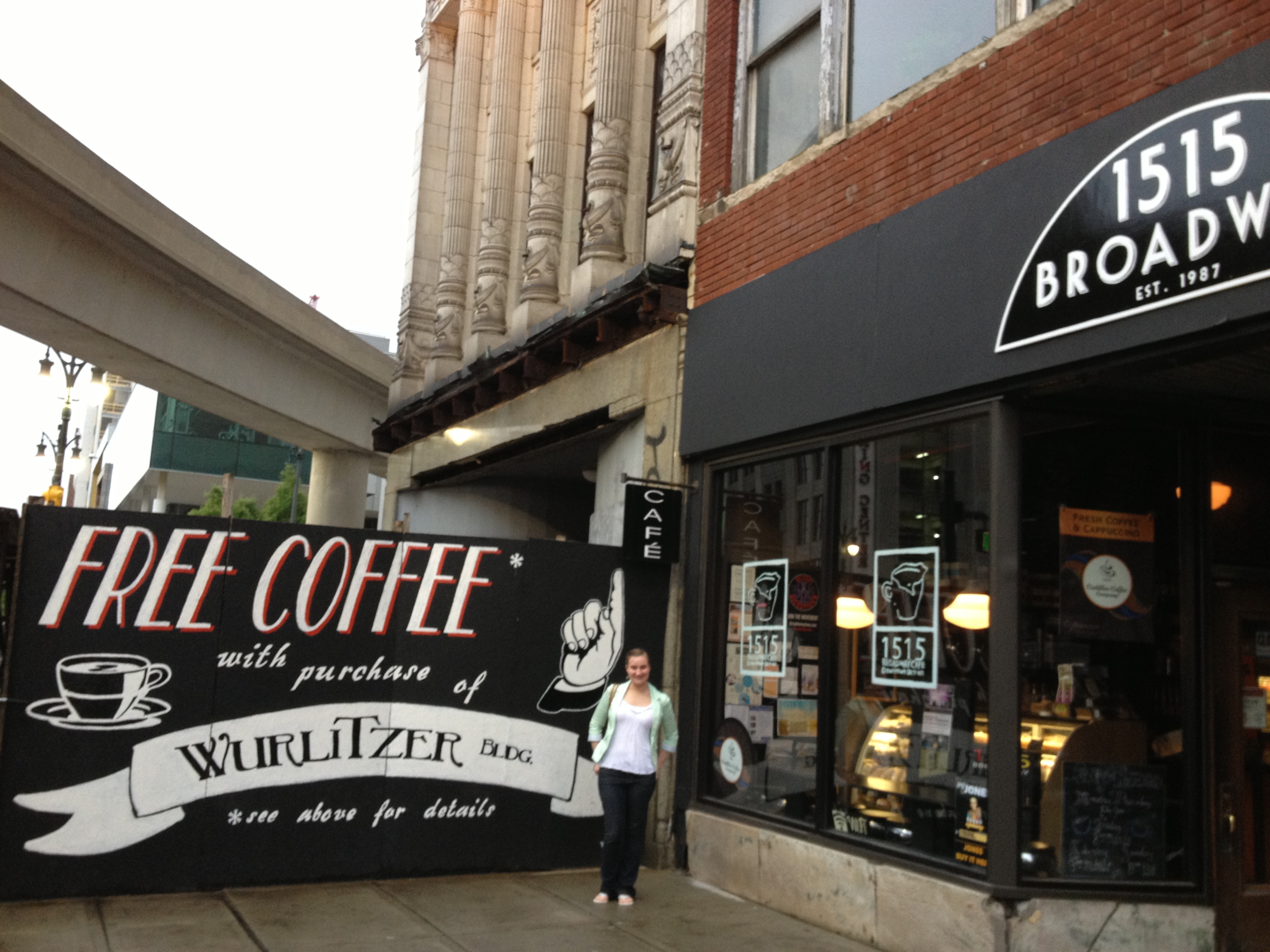 - A cozy café offered free coffee to whoever purchased the building next door;