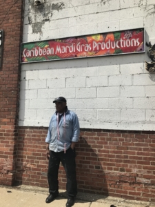 When I meet him, he wears a measuring tape around his neck and asks me to guess his age. He chuckles at the gross underestimate and proudly says he is 75. A native of Trinidad and Tobago, Mr. Taylor moved to Detroit over 40 years ago as a welder and has become an ambassador of Carnival culture in the city. He creates elaborate, wearable works of art in true Carnival, the mother festival of Mardi Gras, fashion: lights, colors, and grandiose scale.