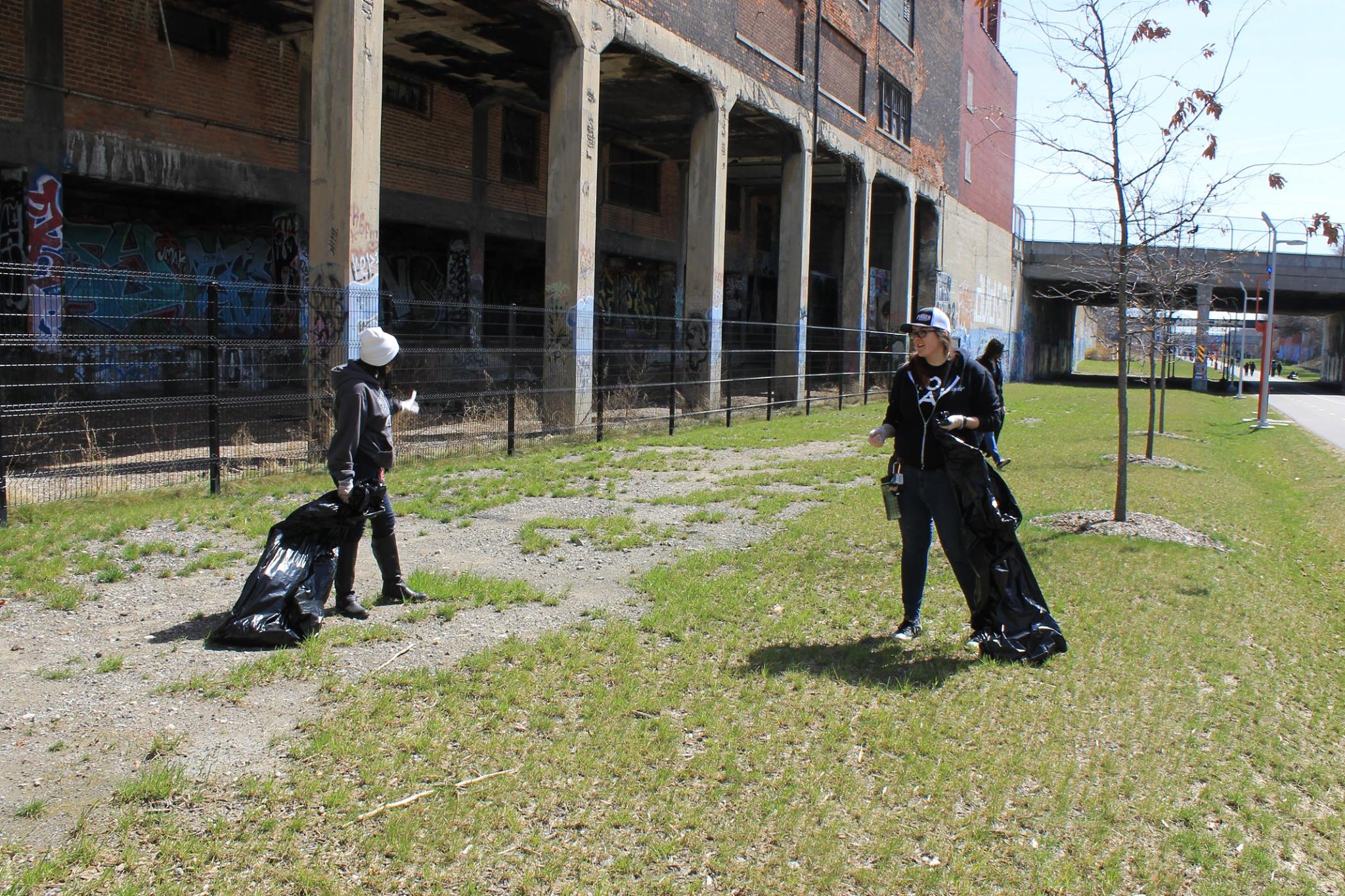 A few weekends ago the sky’s cleared and the sun finally blessed Eastern Michigan with a much needed spring weekend. April seems to have an effect on people, we shed our sweaters and get ready for spring cleaning. Our cleaning efforts often spill over into our neighborhood and Earth Day reminds us to clean up our environment. I live near the Dequindre Cut and was happy to participate in the spring clean up with my fellow fellows.