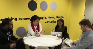 Fellows Jarret Waddy, Mariisa Franz, Laura Winningham and Ian McCain uncover insights from their interviews during a design thinking session