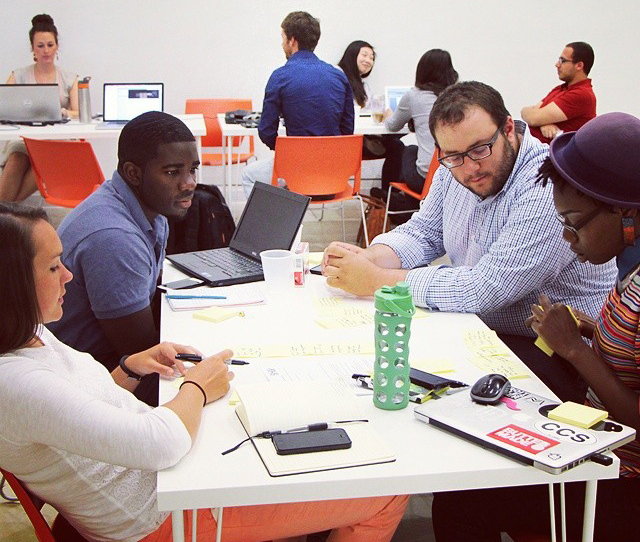 At Challenge Detroit, we use a design thinking process methodology based on and popularized by the d:School Institute of Design at Stanford. The steps include: Empathize, Define, Ideate, Prototype, and Test.
