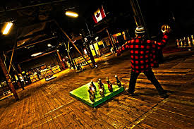 I have yet to play the NEW “official in-the-warehouse” version. I have had the privilege of paying the home version at picnics, as this game has been around SE Michigan for a while. Two sets of bowling pins are set up on opposite ends. Similar to cornhole, the game is 2 vs 2, but unlike cornhole you stand next to your partner = more camaraderie. Surprisingly, big armed former football players aren’t automatically the best players. Sometimes a wobbly “duck” of a throw is superior to a tight spiral.