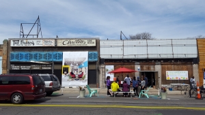 Our most recent event was called “Spring Forward on Six Mile”. Like any good work of architecture, this event had a dual purpose. It served as a block party to celebrate the arrival of spring as well as a streetscape installation to re-imagine the street as more vibrant, equitable, and safe. Set on Six Mile just west of Livernois, the block we were working on was one of spare businesses and very fast-moving traffic.