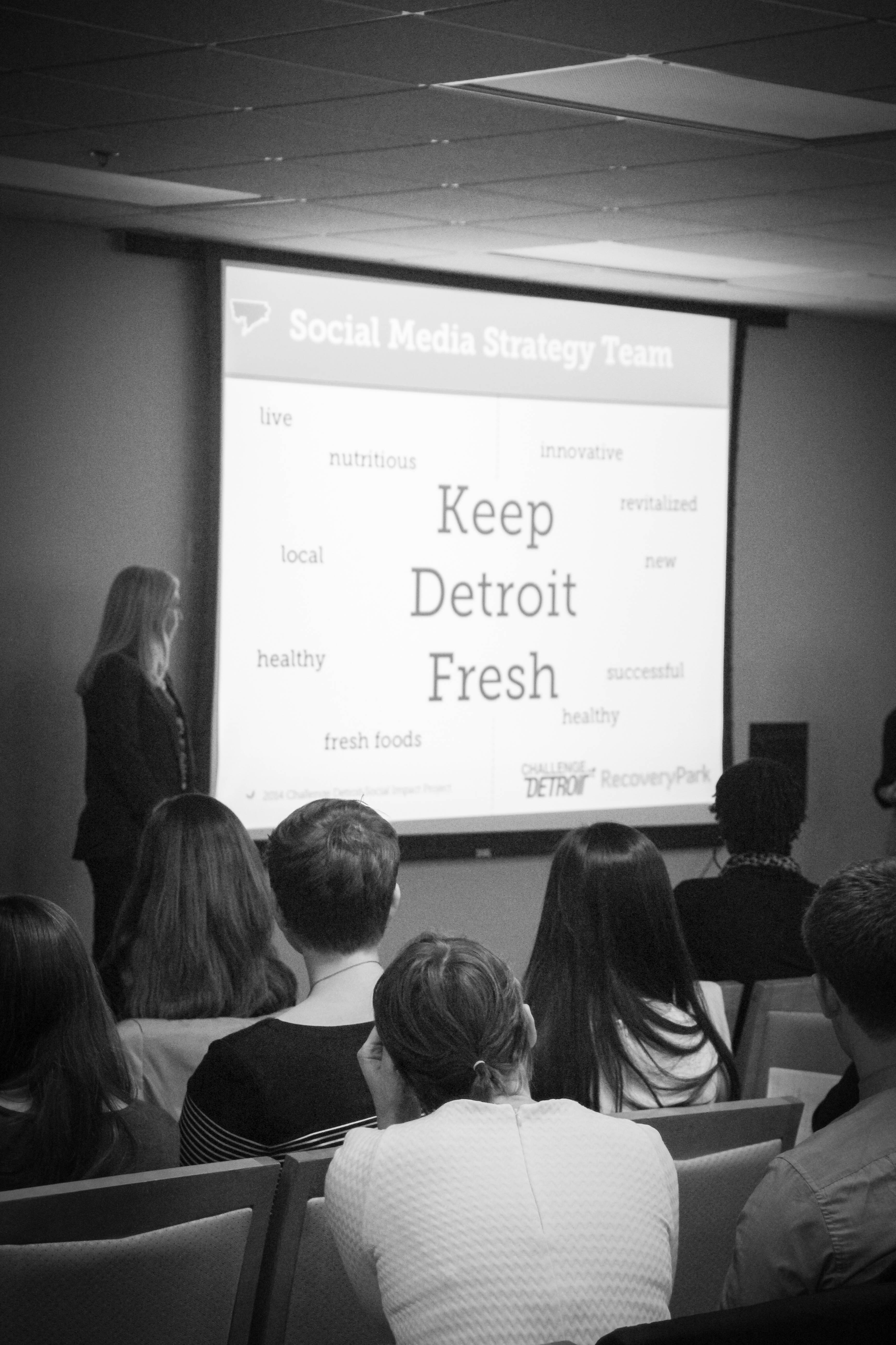 Our first challenge as Year Three Fellows partnered us with RecoveryPark, a non-profit organization dedicated to creating jobs for Detroiters with barriers to employment (e.g. low literacy levels, recovering addicts, returning citizens). By converting blighted land into urban agriculture and aquaculture ventures, and growing a family of value-added food production businesses, RecoveryPark plans to create over 1,000 jobs in the next ten years which will help grow Detroit’s ‘local-live-fresh’ food movement.